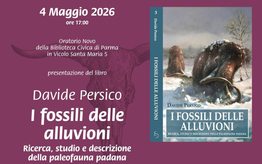 Nell’ambito del “Maggio dei libri 2026” la Società Parmense di Scienze Naturali – SPSN – e l’Associazione donne ambientaliste – ADA – entrambe aderenti al Patto di Parma per la Lettura, presentano il libro “I fossili delle alluvioni” di Davide Persico. L’appuntamento è lunedì 4 maggio 2026 alle ore 17 all’Oratorio Novo della Biblioteca Civica in vicolo Santa Maria 5 a Parma.